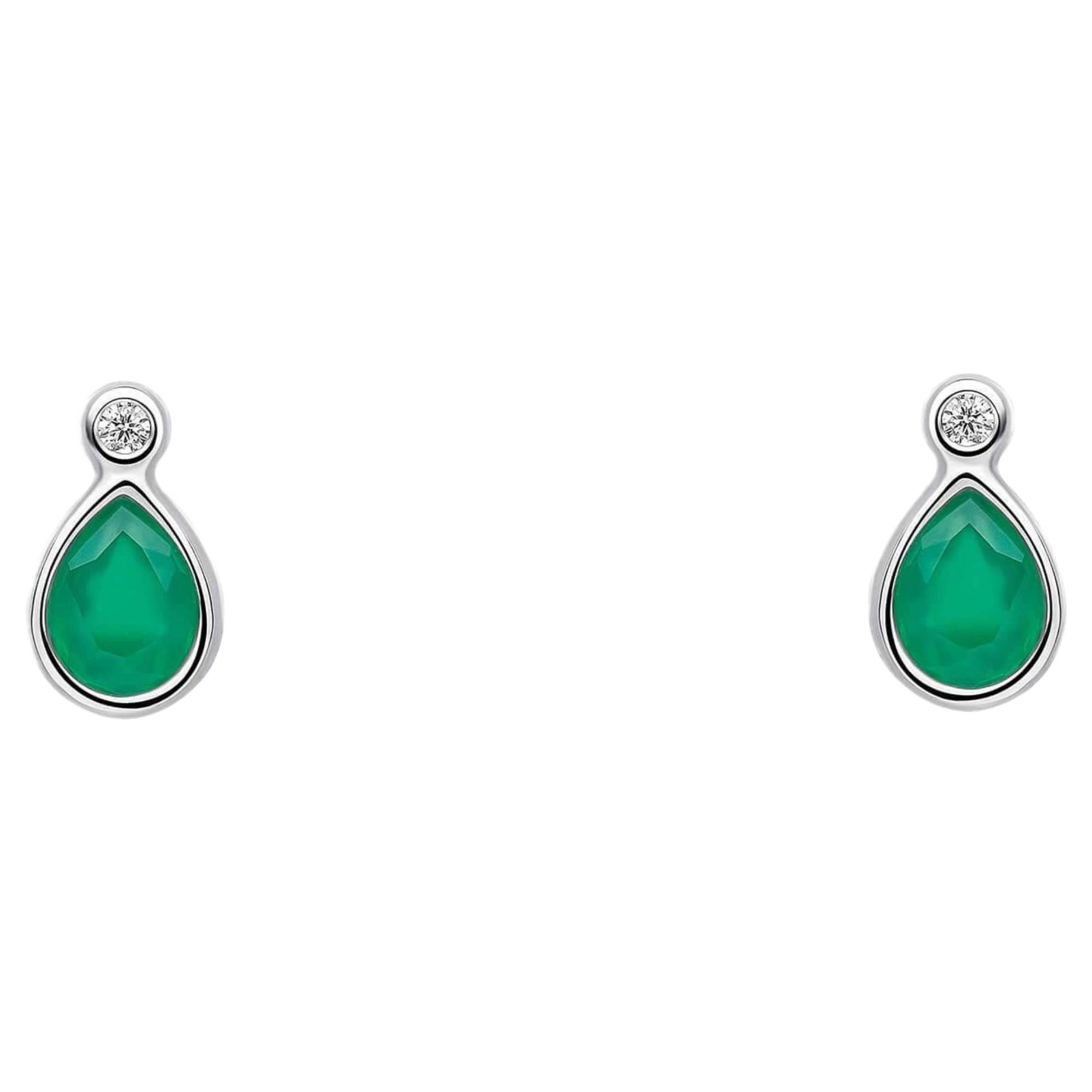 Gemstone: Green Emerald Chalcedony and White Cubic Zirconia