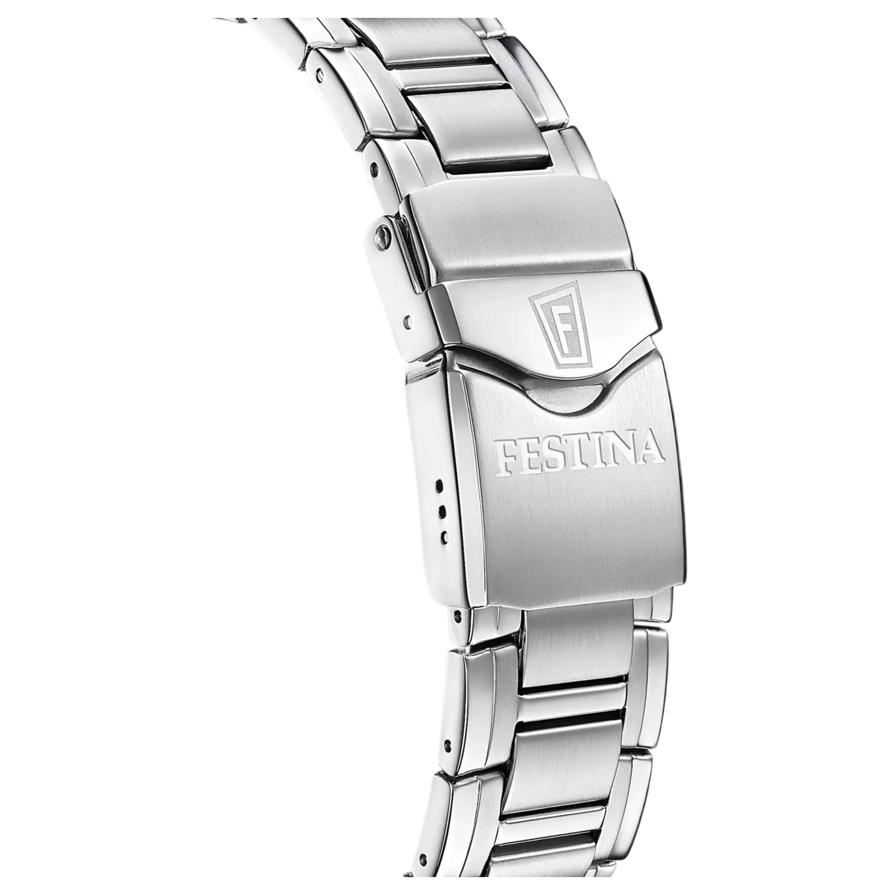 This Swiss-engineered Festina chronograph combines precision mechanics with refined aesthetics. Its ceramic elements and sapphire crystal resist scratches while maintaining exceptional clarity, whilst the robust stainless steel bracelet delivers lasting durability. The quartz movement guarantees dependable accuracy for daily wear and special occasions alike. A sophisticated instrument for discerning men who value meticulous engineering and timeless design in equal measure.