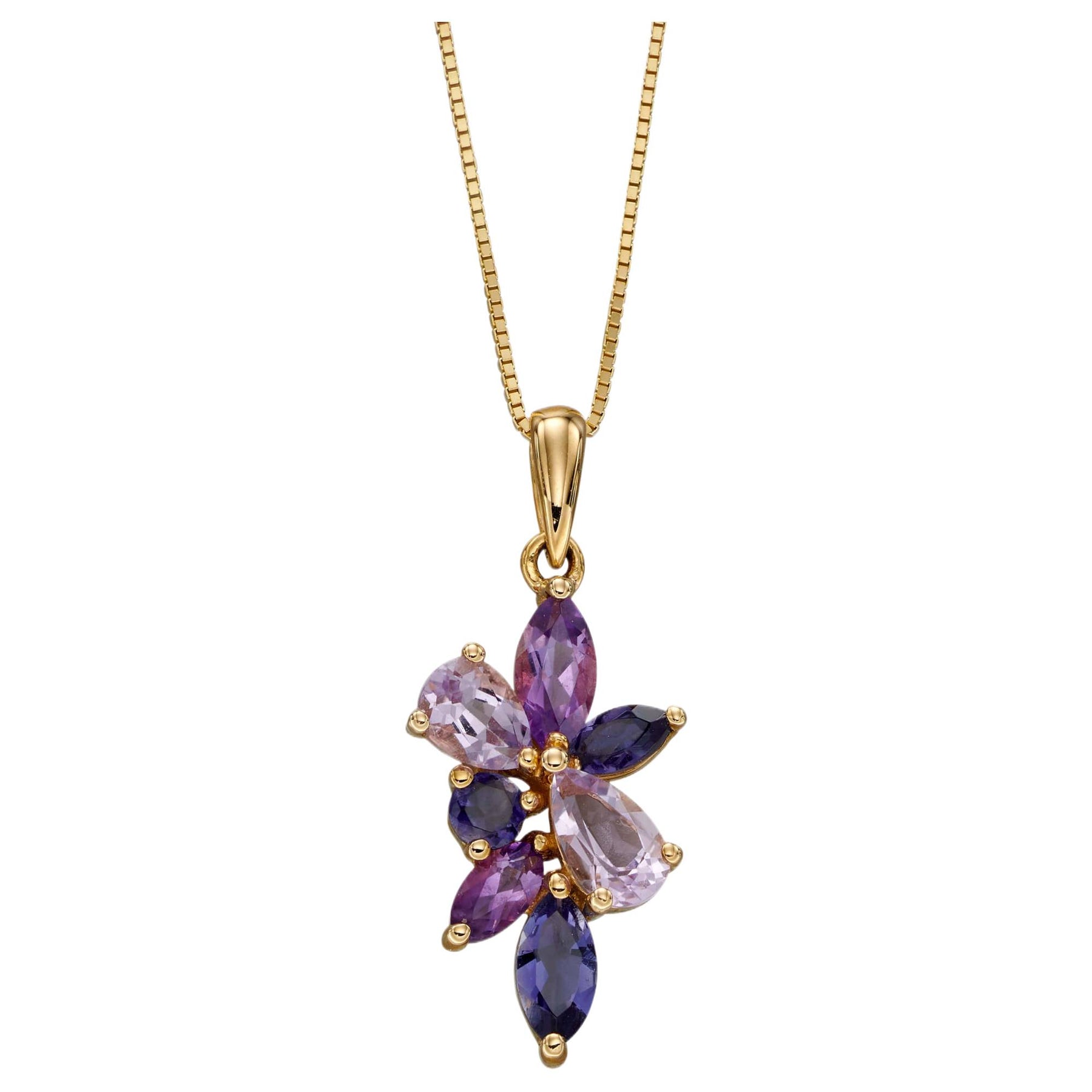 This exquisite 9ct yellow gold cluster pendant showcases marquise-cut Rose de France amethyst, iolite, and amethyst stones in captivating purple hues. Drawing inspiration from oceanic beauty and the mythical Atlantis, its design embodies timeless elegance. Crafted for durability, this piece promises lasting allure. Complement it perfectly by pairing with the coordinating earrings for a refined ensemble.