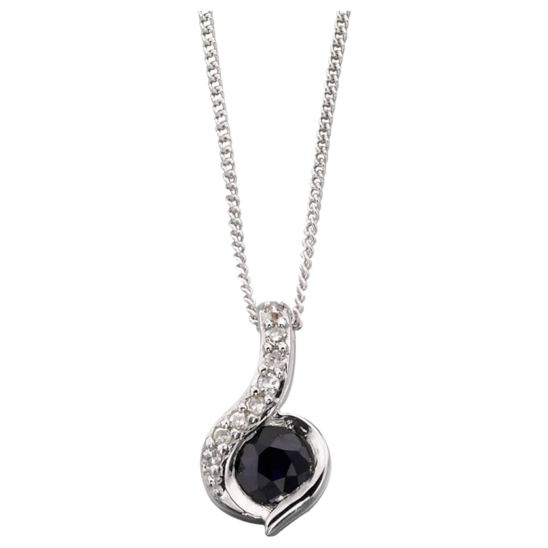 Elements Gold GP881L Blue Sapphire Swirl Pendant With Diamond in 9ct Gold