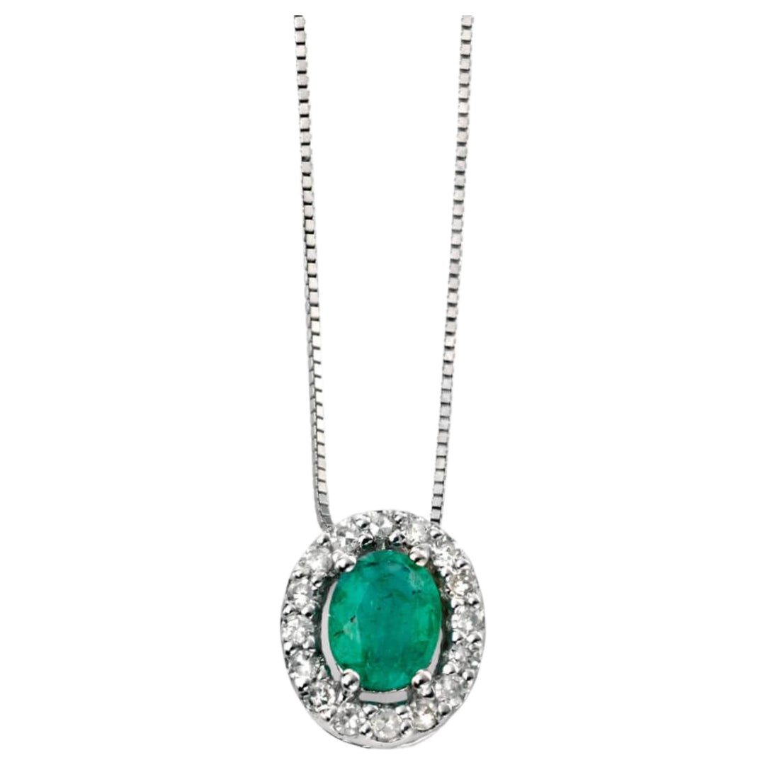 Elements Gold GP2383G Teardrop Emerald and Diamond Pendant in 9ct Gold