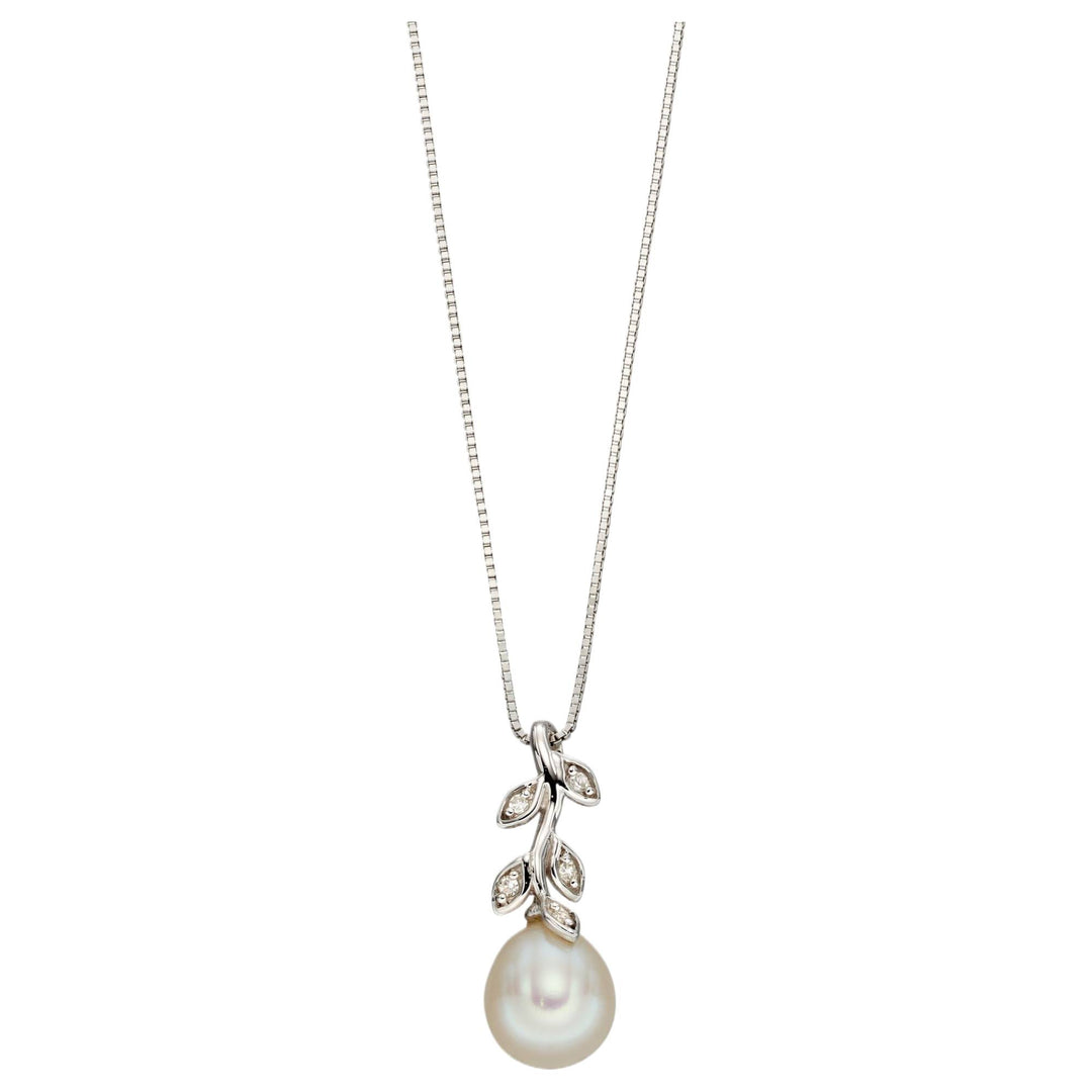 Elements Gold GP2238W Pearl And Diamond Vine Pendant in 9ct Gold