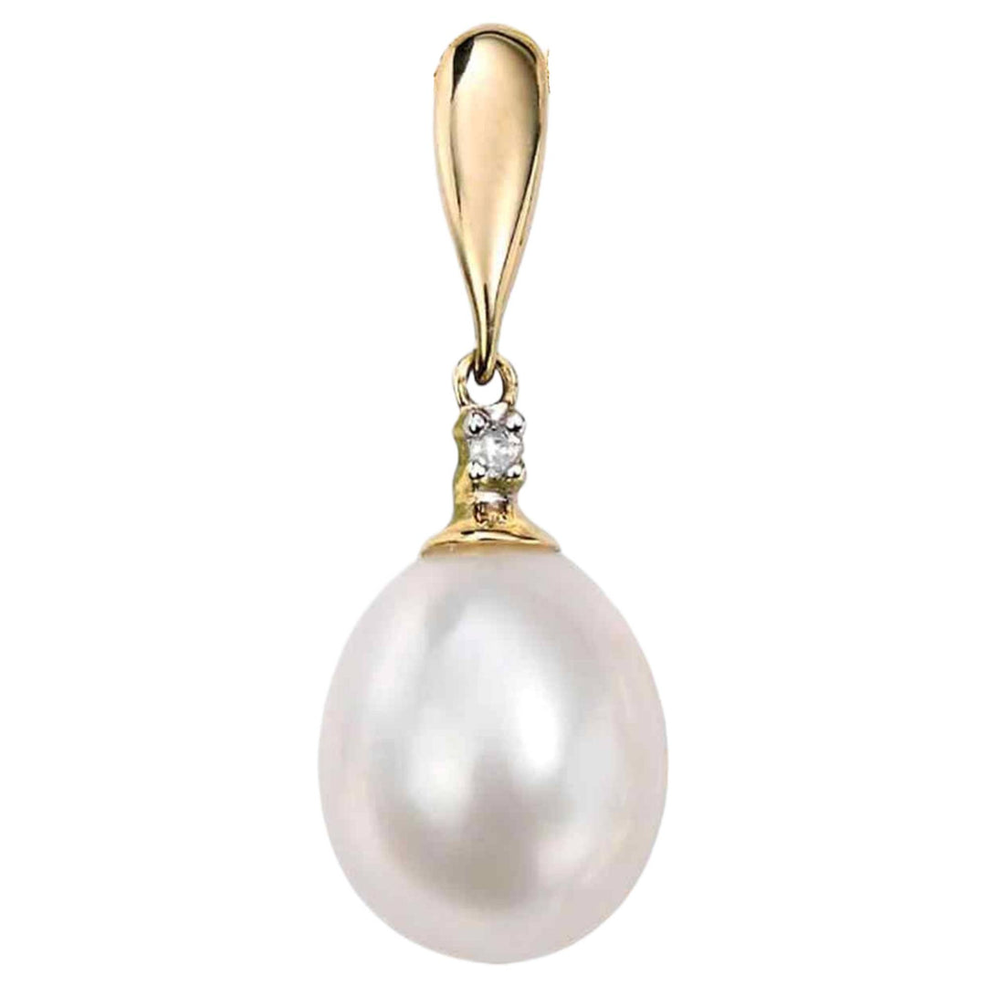 Elements Gold GP758W Freshwater Pearl and Diamond Drop Pendant