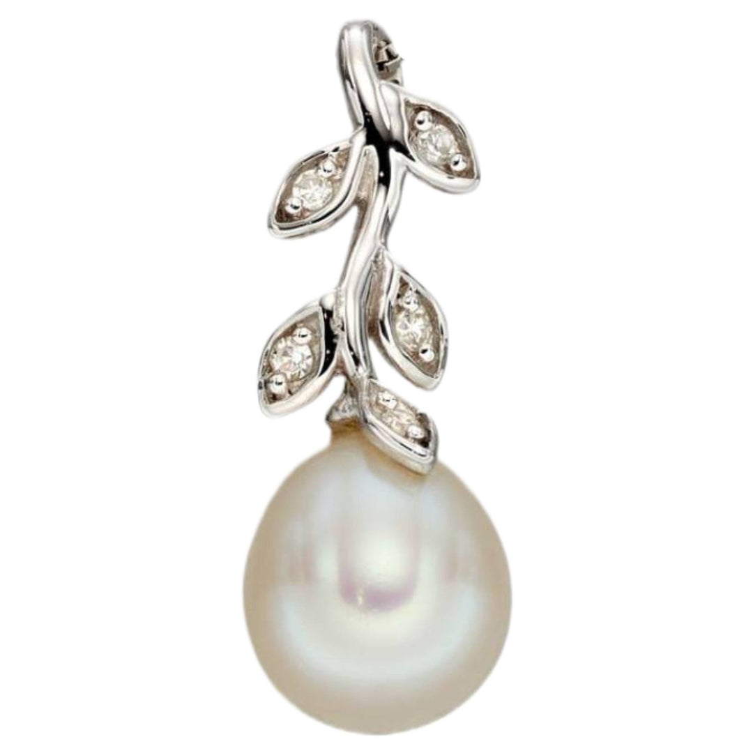Elements Gold GP2018W Freshwater Pearl and Diamond Drop Pendant