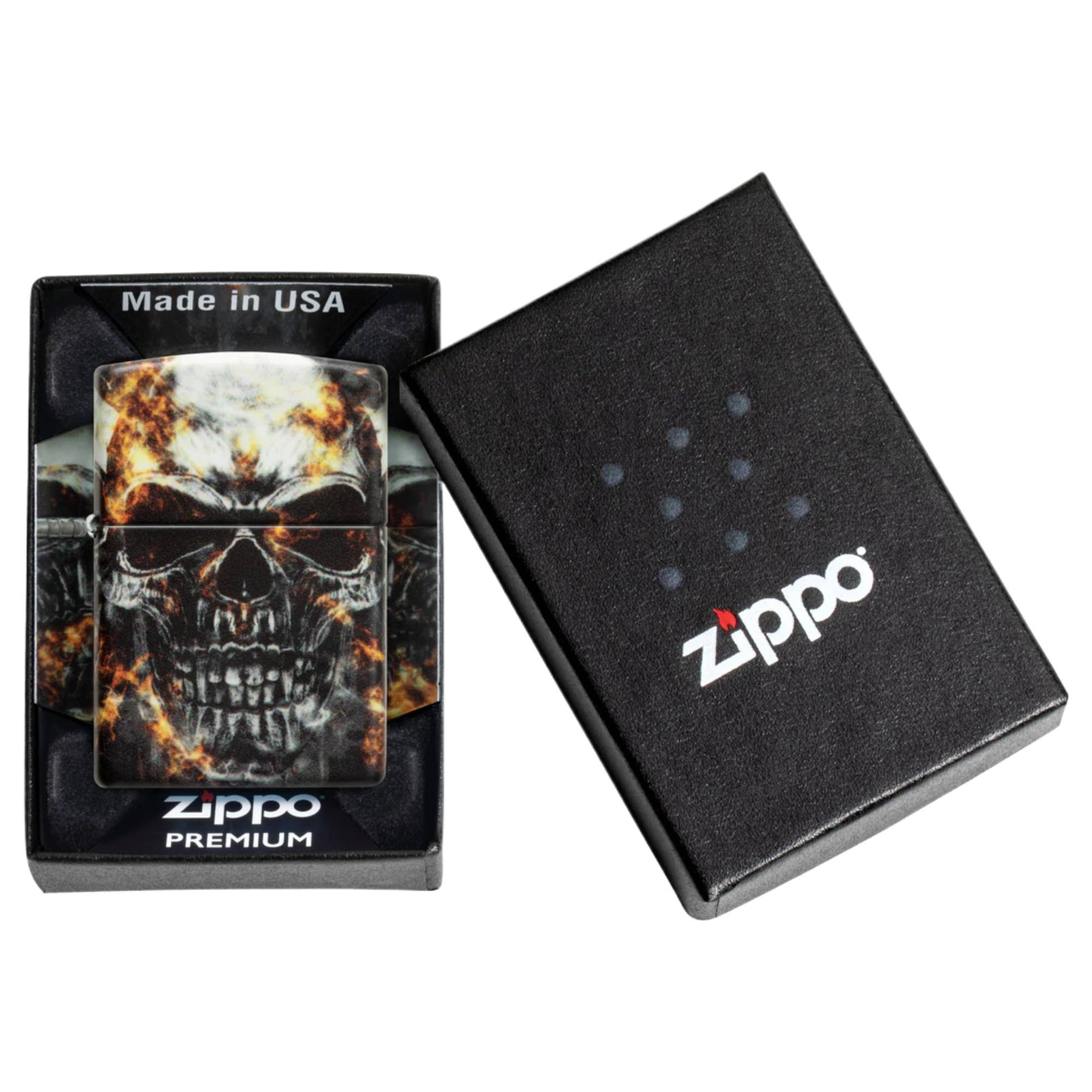 Light up with confidence using this Zippo 49913 Smokey Skulls Design Lighter, engineered with a striking 540-degree full-colour image that commands attention. Built to Zippo's exacting standards, this iconic lighter delivers reliable performance and distinctive style. Whether for personal use or as a thoughtful gift, this skull-emblazoned piece combines functional craftsmanship with bold aesthetic appeal.
